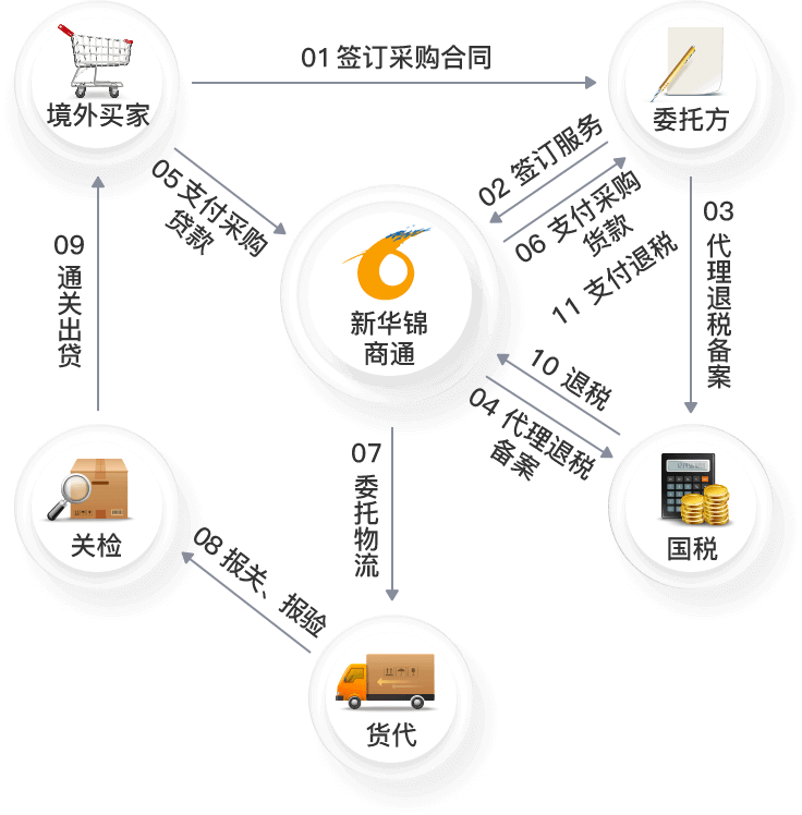 满足退税条件的前提下,代办退税手续;单据齐全,三日内可垫付税款